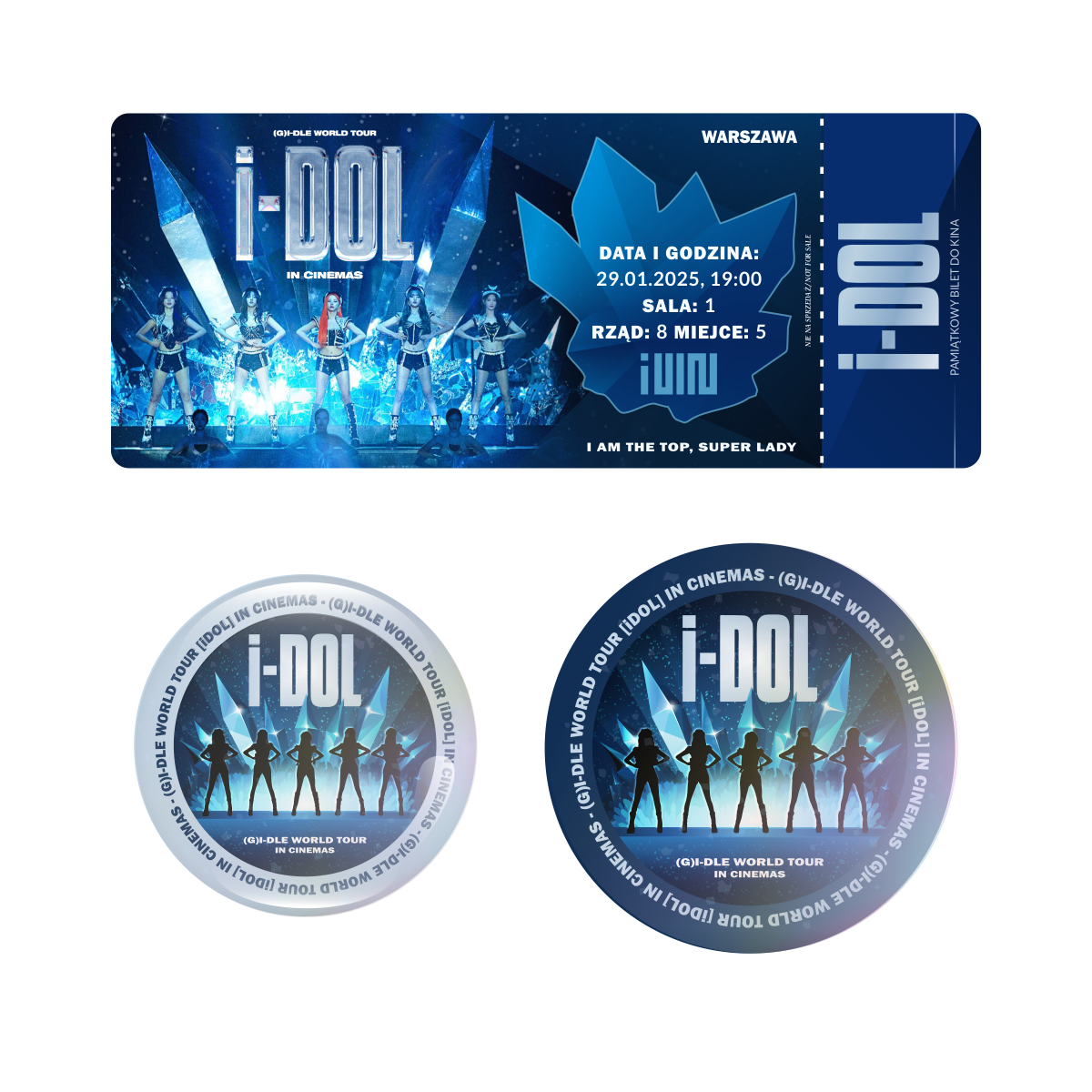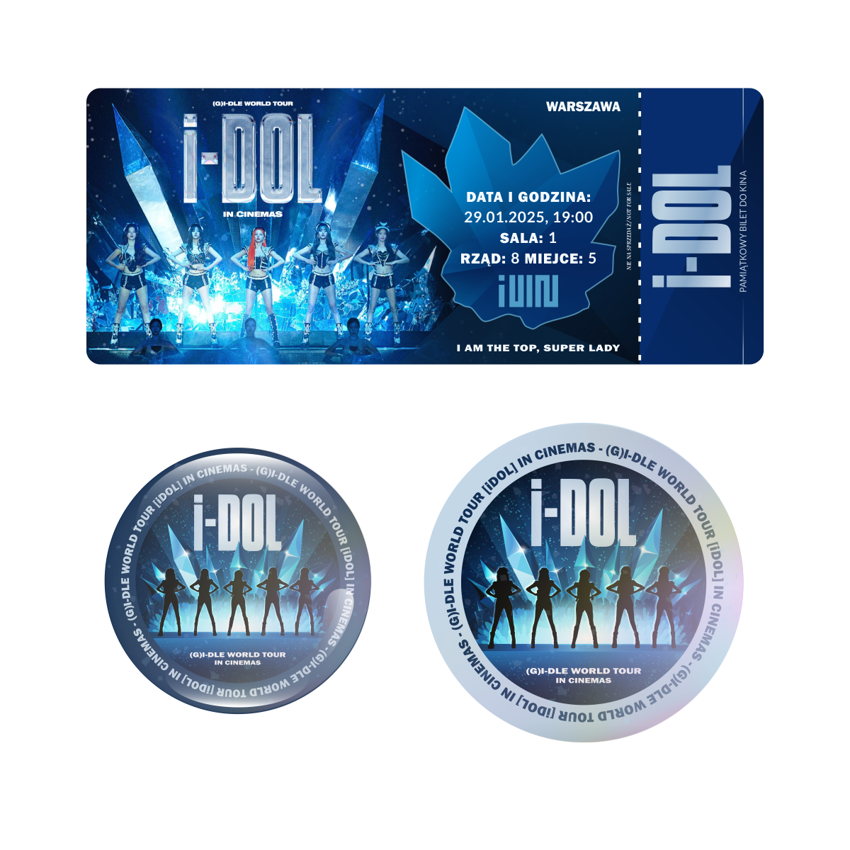 Zestaw holograficzna przypinka i naklejka (G)I-DLE WORLD TOUR [iDOL] (wersja 1) + BILET GRATIS!