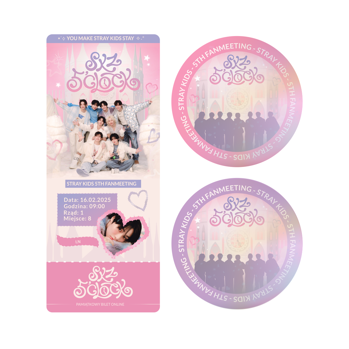 Zestaw dwóch holograficznych naklejek Stray Kids 5TH FANMEETING - SKZ 5'CLOCK + BILET GRATIS!