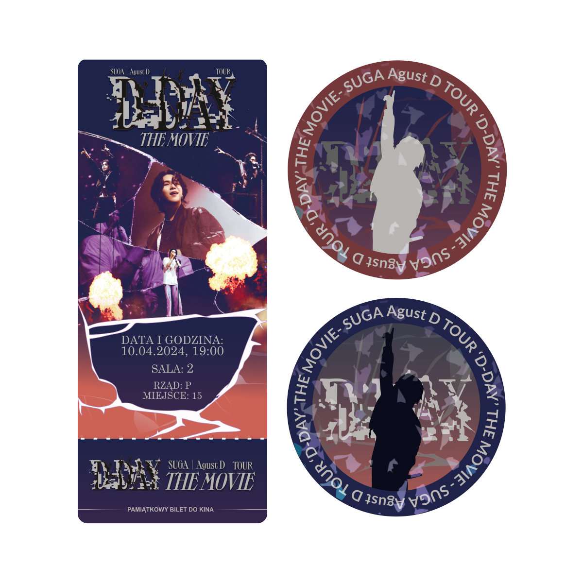 Zestaw dwóch holograficznych naklejek SUGA│Agust D TOUR ‘D-DAY’ THE MOVIE + BILET GRATIS!