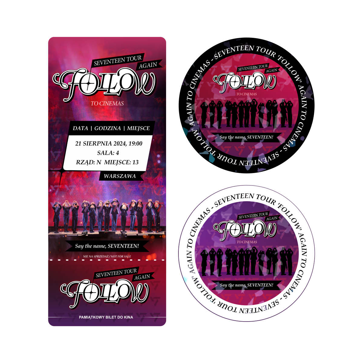 Zestaw dwóch holograficznych naklejek SEVENTEEN TOUR 'FOLLOW' AGAIN TO CINEMAS + BILET GRATIS!