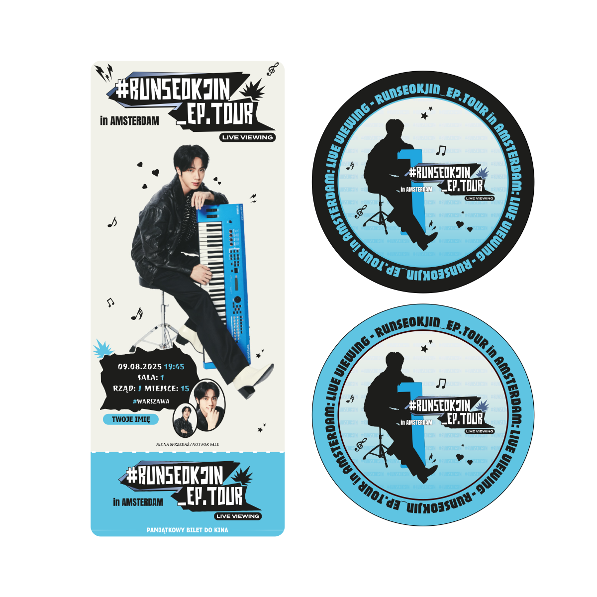 Zestaw dwóch holograficznych naklejek RUNSEOKJIN_EP.TOUR + BILET GRATIS!