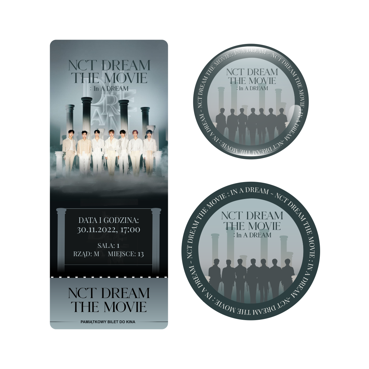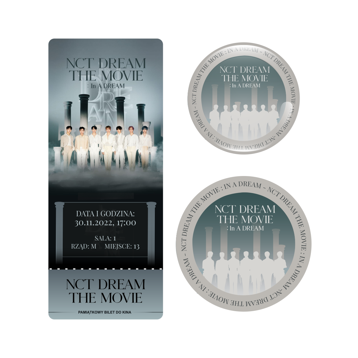 Zestaw perłowa przypinka i naklejka NCT DREAM THE MOVIE : In A DREAM (wersja 2) + BILET GRATIS!
