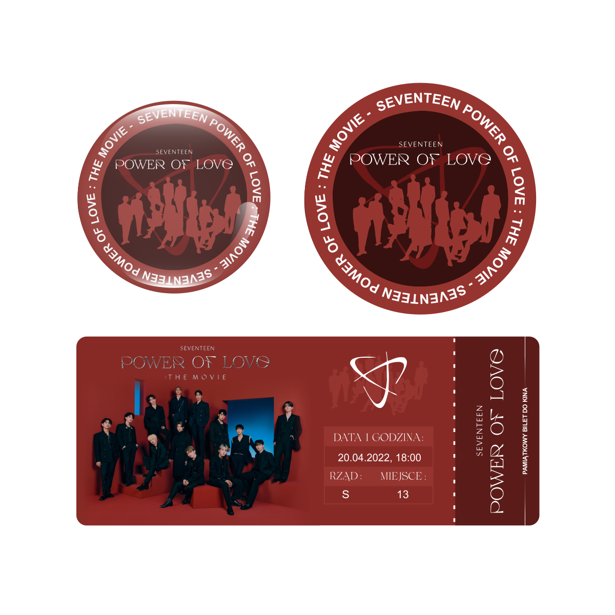 Zestaw perłowa przypinka i naklejka SEVENTEEN POWER OF LOVE: THE MOVIE (wersja 2) + BILET GRATIS!