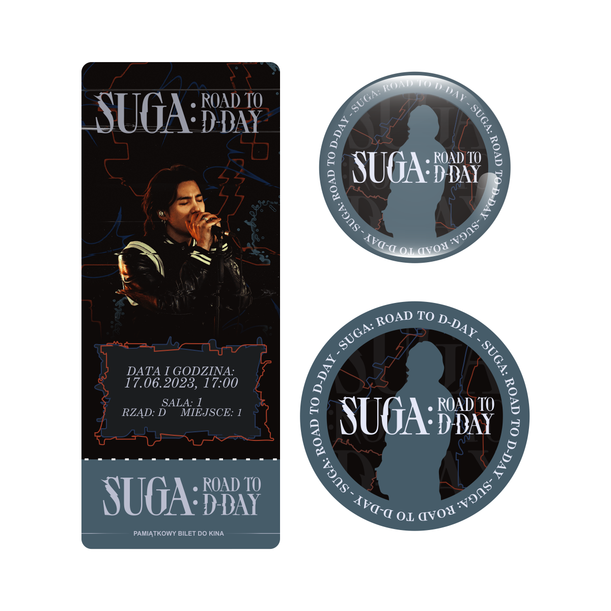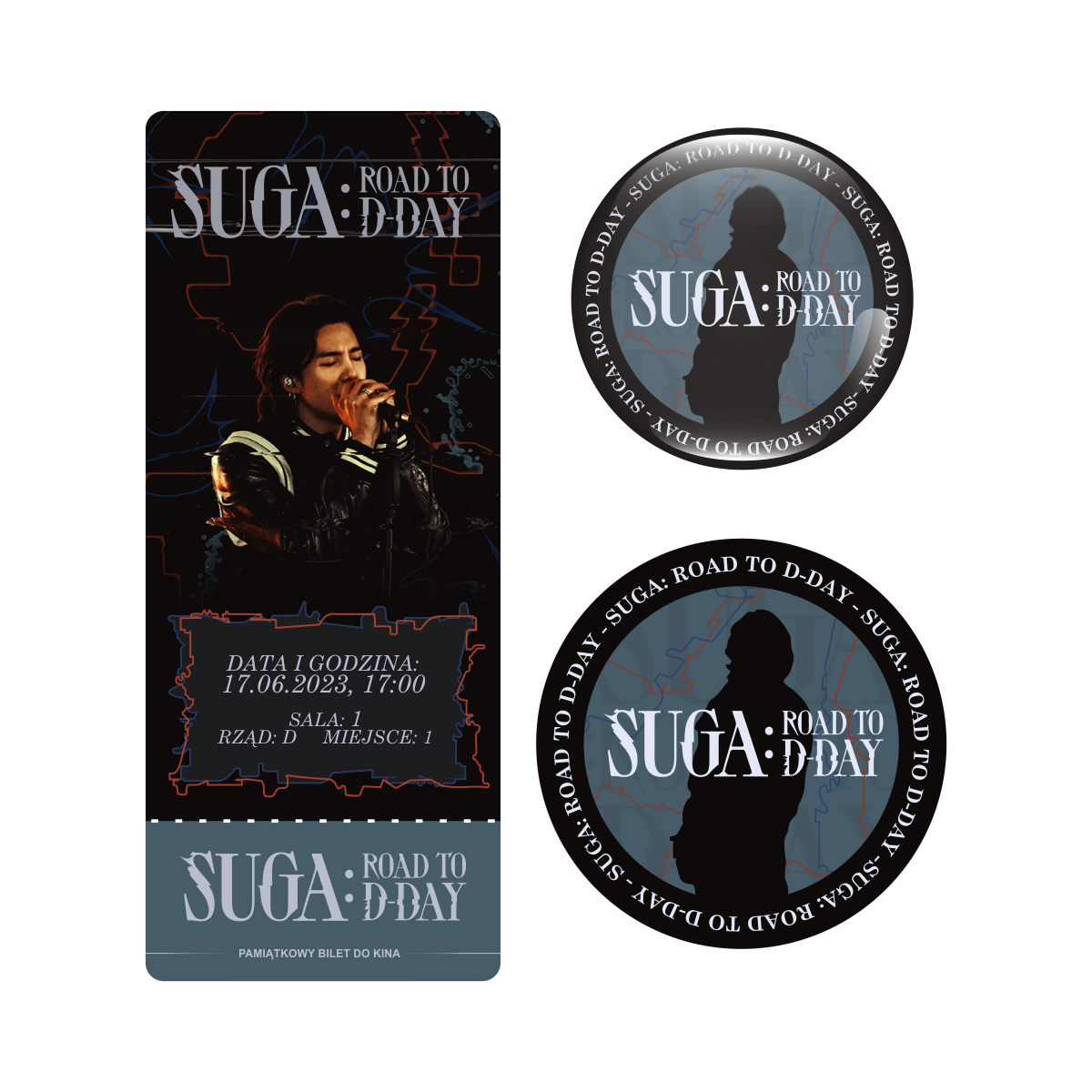 Zestaw perłowa przypinka i naklejka SUGA: ROAD TO D-DAY (wersja 2) + BILET GRATIS!