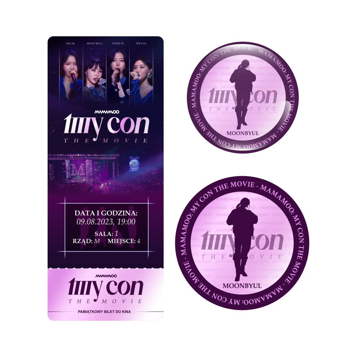 Zestaw perłowa przypinka i naklejka MAMAMOO: MY CON THE MOVIE (Moonbyul) + BILET GRATIS!