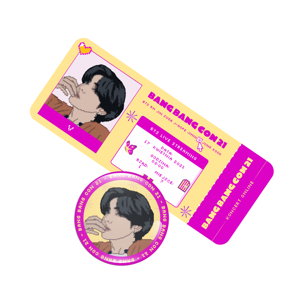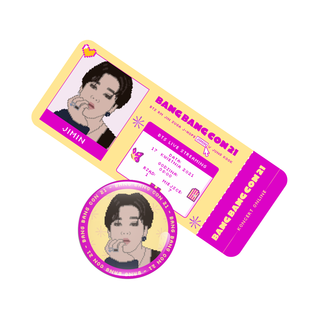 Perłowa przypinka BTS BANG BANG CON 21 (wersja Jimin) + BILET GRATIS!