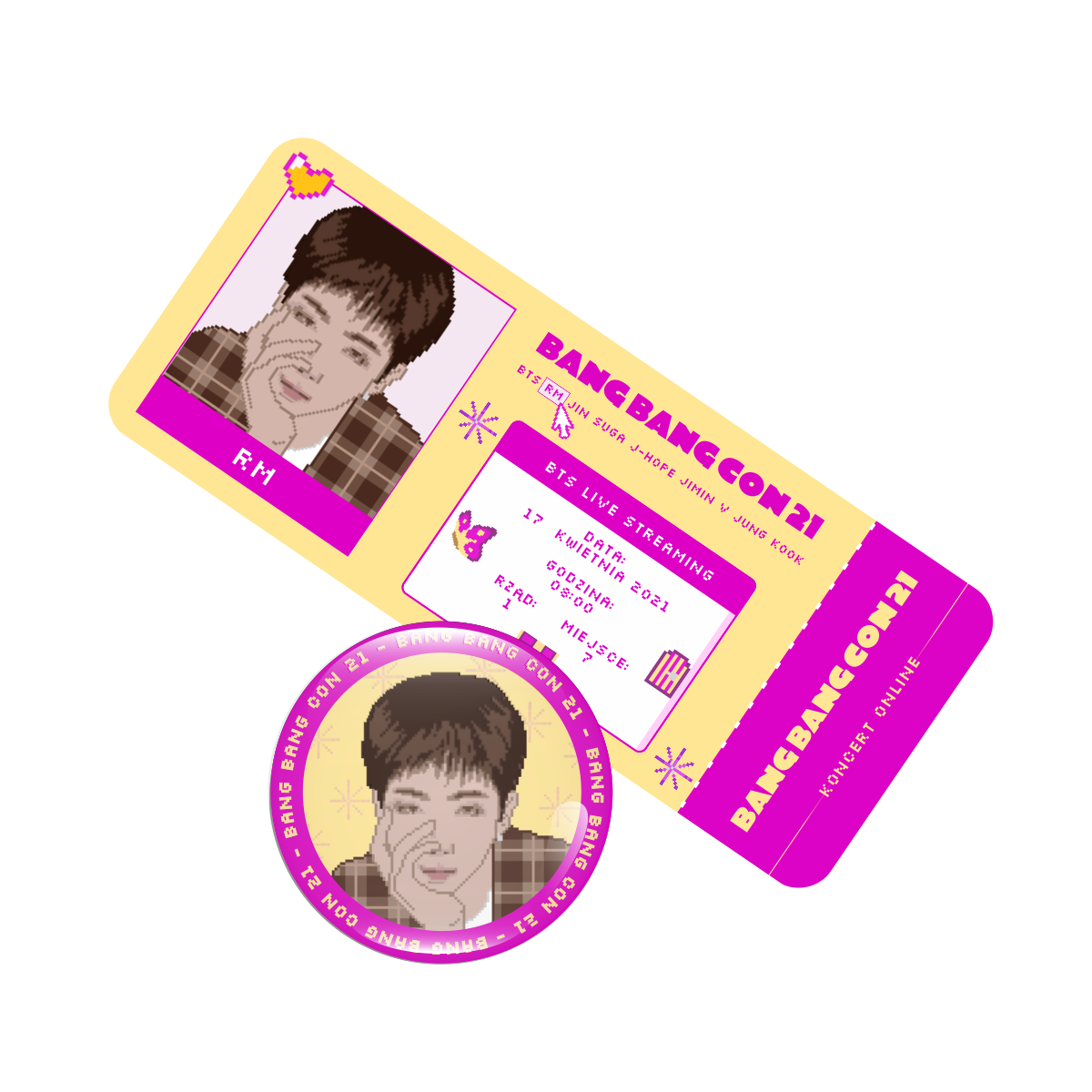 Perłowa przypinka BTS BANG BANG CON 21 (wersja RM) + BILET GRATIS!