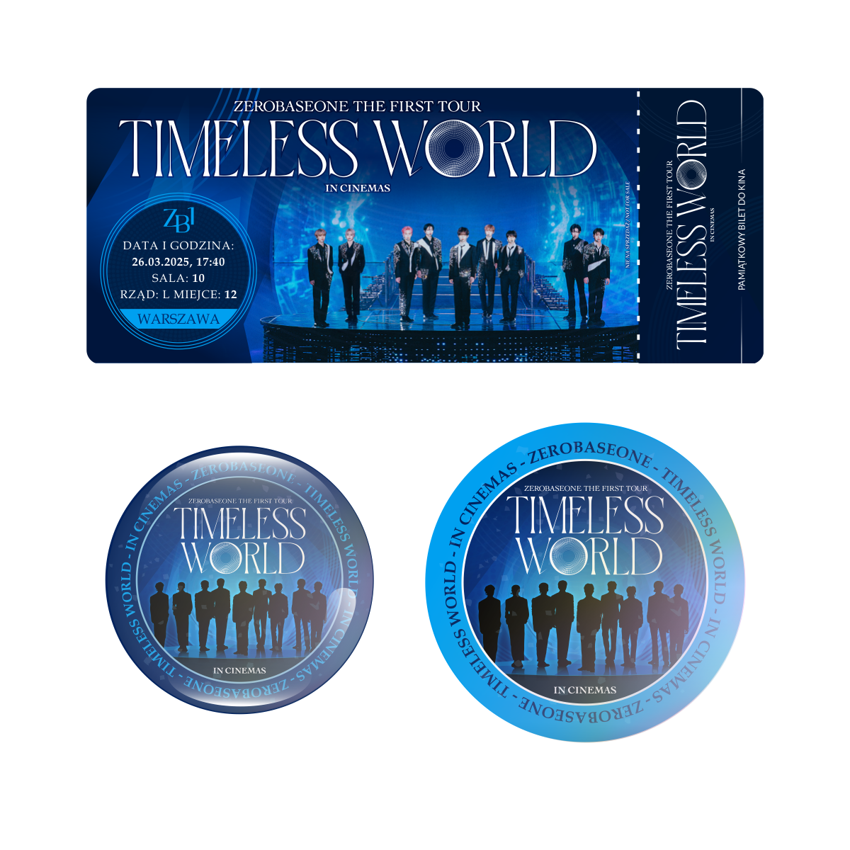 Zestaw holograficzna przypinka i naklejka ZEROBASEONE THE FIRST TOUR: TIMELESS WORLD (wersja 2) + BILET GRATIS!