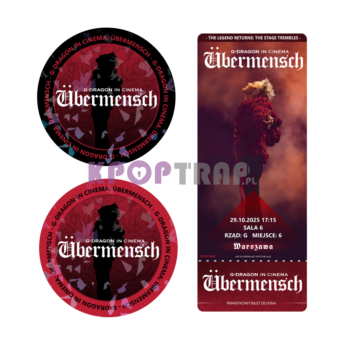 Wyjątkowy zestaw dwóch naklejek holograficznych dla wszystkich miłośników twórczości G-DRAGONA! Upamiętnijmy razem wyjątkowy pokaz koncertu G-Dragon In Cinema: Ubermensch!